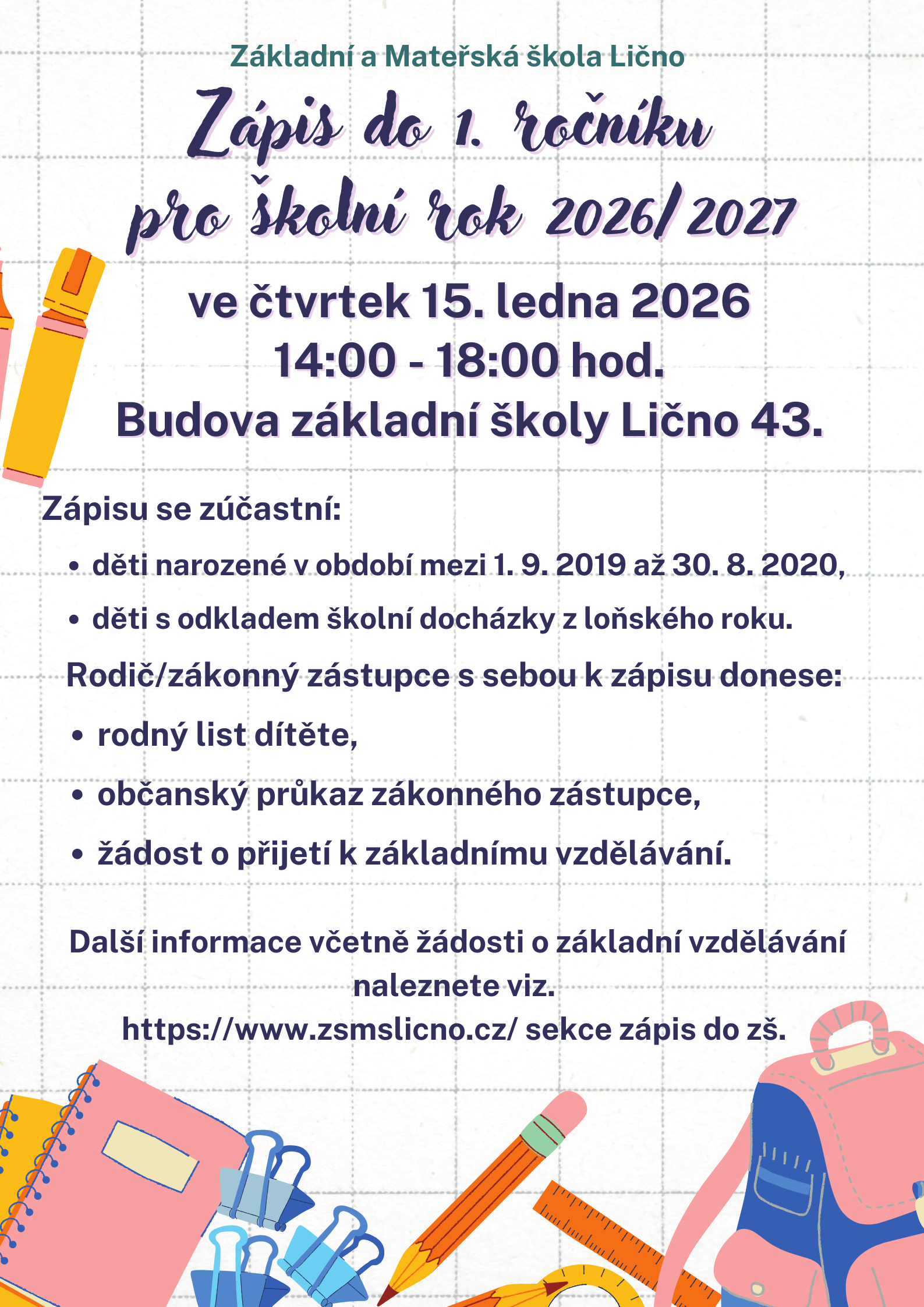 Podrobné informace v sekci: zápis do ZŠ